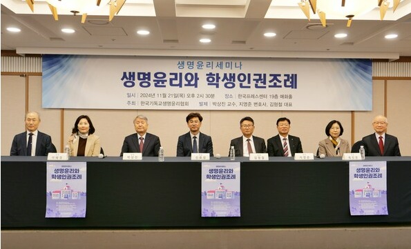학생인권조례가 종립학교의 설립 이념과 정체성을 침해한다는 비판이 지속적으로 제기되고 있다. 한국기독교생명윤리협회는 21일 한국프레스센터에서 '생명윤리세미나'를 열고 학생들의 '학교 선택권' 보장을 촉구했다.