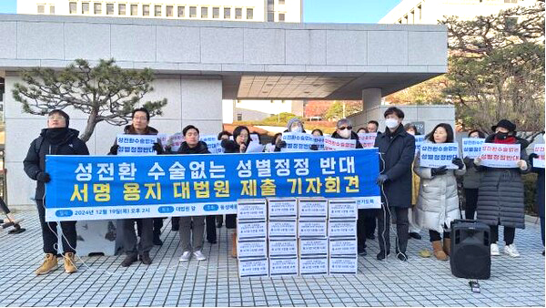 대법원의 '성전환 수술없는 성별 정정'을 허가하는 사무처리지침 개정에 반대하는 시민 67만여 명의 서명이 19일 대법원에 제출됐다.
