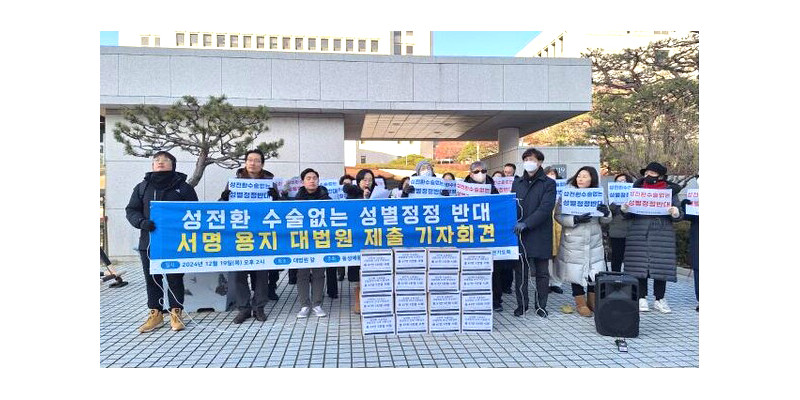 동성애동성혼반대국민연합(동반연), 10·27 한국교회200만 연합예배 및 큰기도회조직위원회 등 100여 개 시민단체들은 서명 제출 전 기자회견을 열고 "대법원은 성별 정정에서 성전환 수술 요건 폐지 검토를 즉각 중단하라"고 촉구했다.