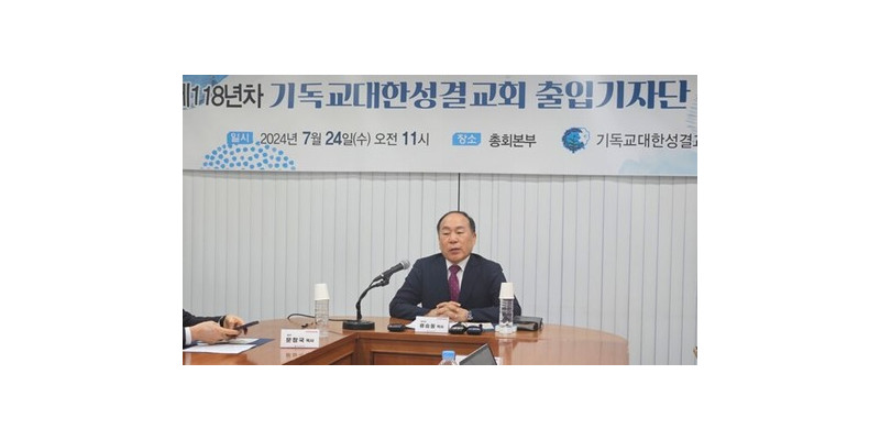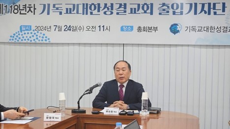 기성은 24일 서울 강남구 총회본부에서 기자간담회를 열고 제118차 총회 중점 사업을 발표했다.