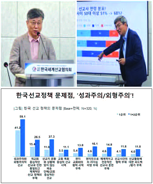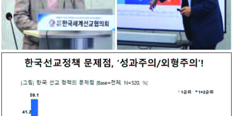 선교사들에게 한국 선교정책의 문제점에 대해 물은 결과, '성과주의와 외형주의적 선교'가 41.2%로 1위를 차지했다.