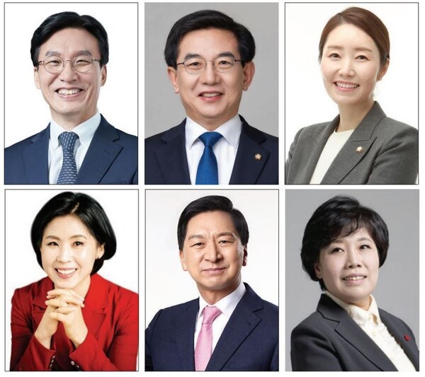 (윗줄 왼쪽부터) 김민석(서울 영등포을), 정일영(인천 연수을), 강선우(서울 강서갑), (아랫줄 왼쪽부터) 김미애(부산 해운대을), 김기현(울산 남구을), 조배숙(국민의힘 비례대표) 의원.