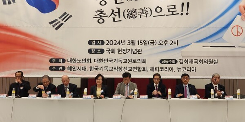 이날 교계 원로들은 성명서를 발표하고 "거짓 공약으로 인기에 영합한 정책을 펼치는 자는 뽑지 말고 높은 윤리와 도덕성을 가진 성숙한 후보들을 국회로 보내자"며 "세상의 빛과 소금인 기독교인들이 투표에 꼭 참여할 것"을 요청했다.
