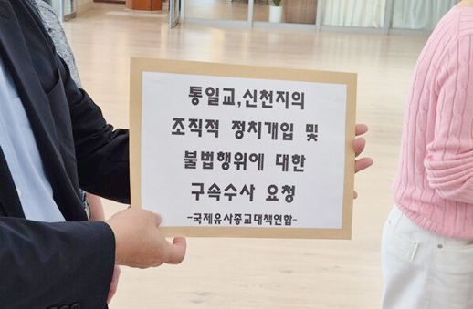 사이비종교 피해자들이 통일교 한학자 씨의 구속수사를 촉구하고 나섰다. ⓒ데일리굿뉴스