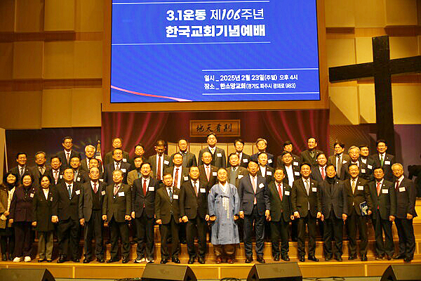 한국교회총연합(한교총·대표회장 김종혁 목사)은 23일 경기도 파주시 한소망교회에서 '3·1운동 106주년 한국교회 기념예배'를 드렸다. 예배에는 주요 교단 총회장 등 교계 지도자들과 교인들이 참석해 3.1 정신을 기리며 한국교회가 새롭게 거듭나길 기도했다. 이 자리에는 더불어민주당 김민석 의원과 국민의힘 김기현 의원 등 기독 정치인들도 참석했다.