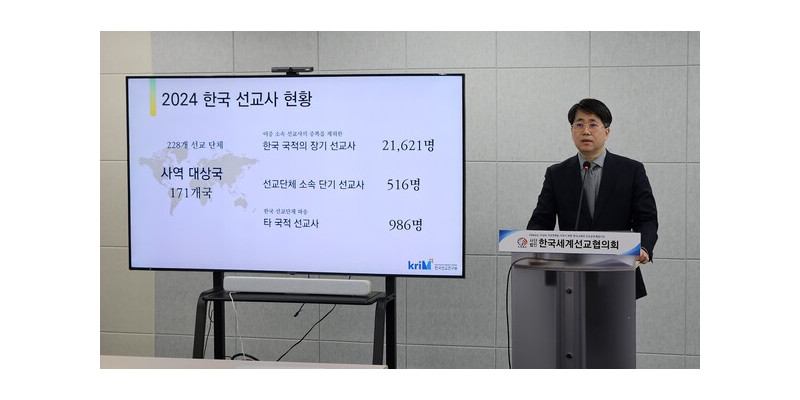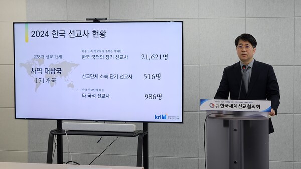 통계에 따르면, 한국 선교사는 지난해 기준 171개국에서 2만1,621명의 장기 선교사와 516명의 단기 선교사가 활동하고 있다. 국내 선교단체가 파송한 타국적 선교사는 총 986명이다.