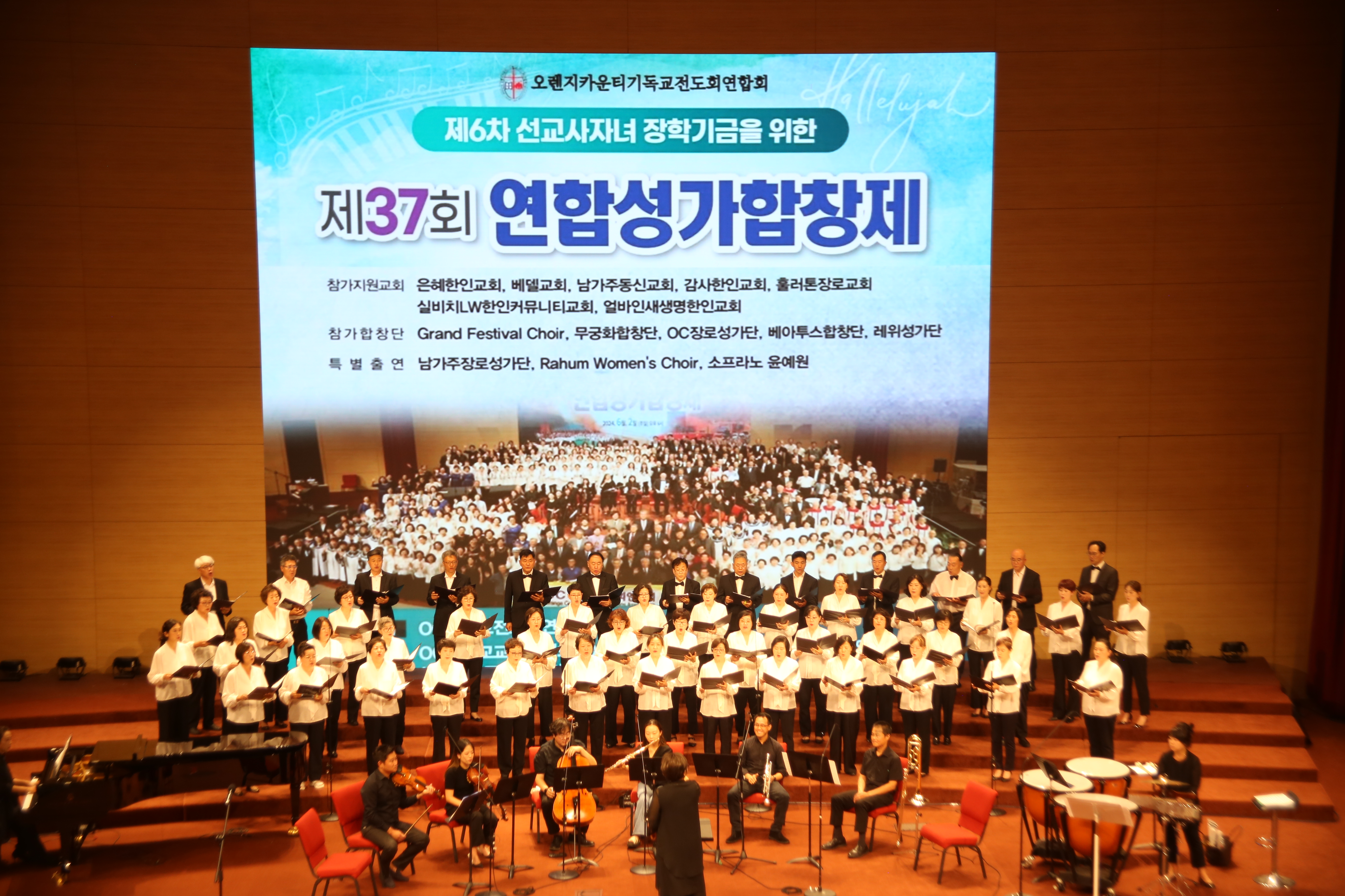 오렌지카운티기독교전도회연합회(회장 한성준 집사, 이하 연합회)가 선교사자녀 장학기금을 위한 제37회 연합성가합창제를 지난 6월29일(주일) 오후 6시 은혜한인교회(담임 한기홍 목사)에서 성황리에 개최했다.