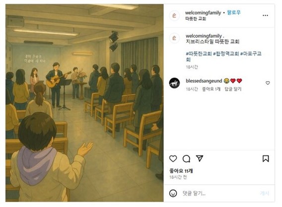 서울의 한 교회는 예배 현장을 \'지브리풍\' 그림으로 그려 SNS에 업로드했다. (인스타그램 캡처)
