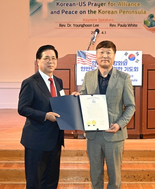 이날 이 목사는 미국 연방하원과 뉴욕주하원 의회로부터 감사증도 전달받았다.