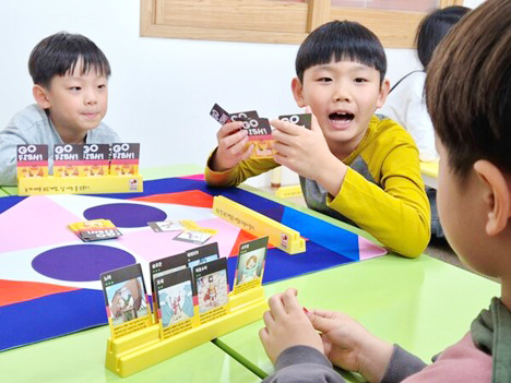 보드게임 \'고피쉬 성경 구약\'을 즐기고 있는 아이들. 카드 속 구약 이야기를 주고받으며 게임에 몰두하고 있다. ⓒ데일리굿뉴스