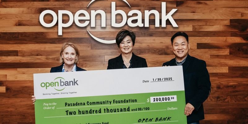 은행장 재직 중 수익의 10%를 지역사회 환원을 위해 사용하겠다고 밝혀왔던 오픈뱅크(행장 민 김)와 오픈청지기재단은 지난 30 일 LA 인근에서 발생한 산불로 인한 피해자들을 돕기 위한 구호 성금 20 만달러를 파세디나 커뮤니티 재단(Pasadena Community Foundation)에 전달했다. 이 성금은 PCF 의 이튼 산불 피해자 돕기 펀드(Eaton Fire Relief and Recovery Fund)를 통해 이튼 산불 피해 주민들을 위해 사용된다.