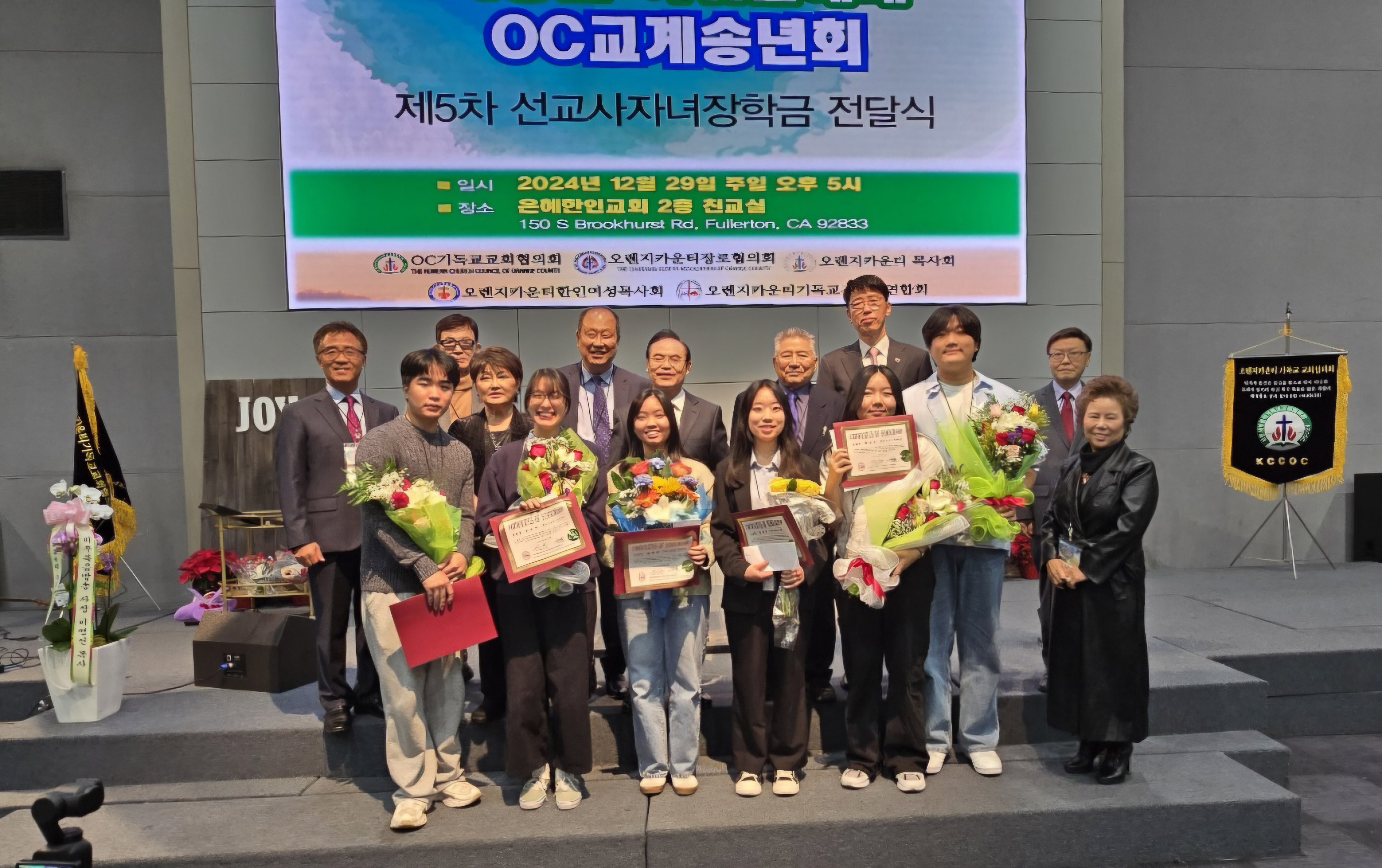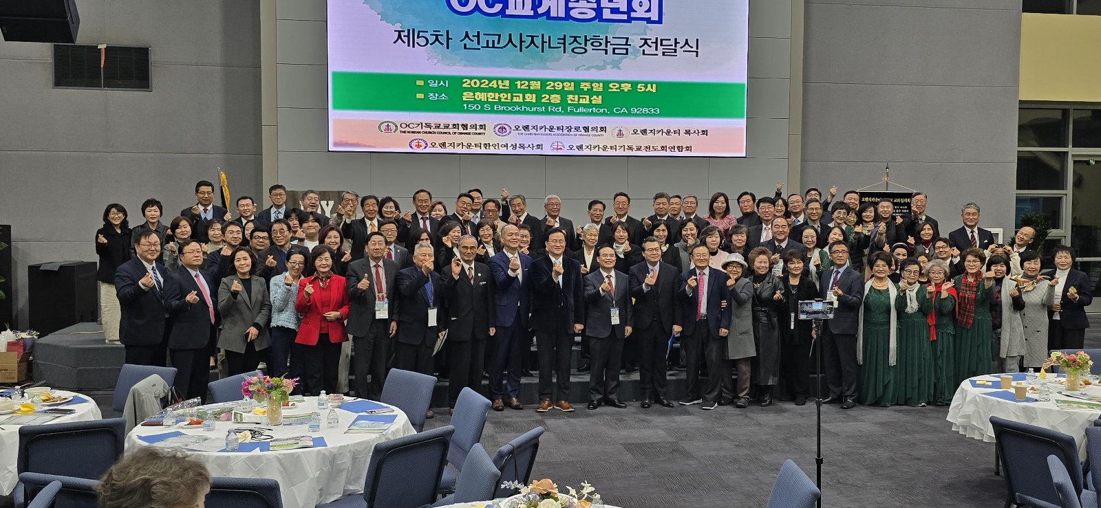 오렌지카운티 교계 연합 송년회가 올해는 제 34대 OC교협 회장단 이취임예배 및 제5차 선교사자녀장학금전달식과 함께 열렸다.
