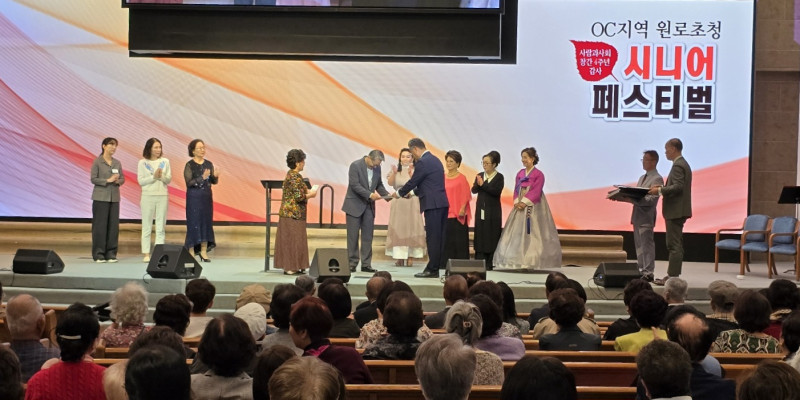 추수감사절을 맞아 오렌지카운티 지역 시니어를 섬기는 잔치가 개최됐다. 본사 총괄본부장이며 방송언론인 윤우경 권사가 주최한 OC교계와 센터메디컬그룹이 참여한 감사절 맞이 OC시니어페스티벌이 지난 11월 2일, 토요일 감사한인교회에서 성공적으로 마무리됐다. 인근지역 원로들과 시니어 300명을 초청해 마련된 이번 페스티벌은 1부 이창남목사(OC교협 수석부회장, 주님의손길교회 시무)의 사회로 시작되어 배기호장로(OC장로협 회장), 심상은목사(OC교협회장, 갈보리선교교회 시무)의 환영말씀, 이원석목사(OC목사회 회장, 하사랑교회 시무)의 축도로 진행됐다.