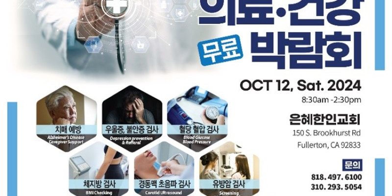 일반 건강, 간염, 백신접종과 치매, 우울증 등 정신 건강 상담까지 10월12일 토요일에, LA와 OC지역 주민 대상