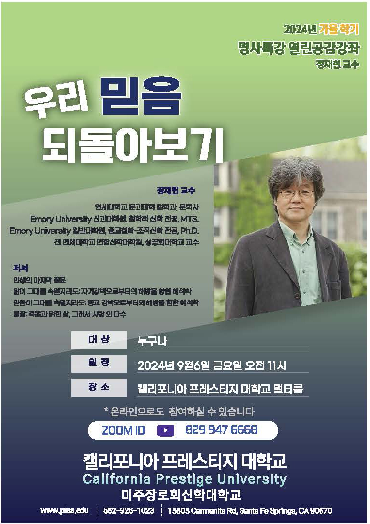 [미주교계뉴스] 캘리포니아 프레스티지 대학교, 명사특강 열린공감강좌 연다