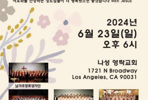 팬데믹 기간 멈추었던 오렌지카운티 지역의 유명 성가제가 다시 부활했다. OC기독교전도회연합회(이하 연합회, 회장 신용)가 지난 6월 2일(주일) 오후 6시 은혜한인교회에서 제 36회 연합성가합창제를 성황리에 진행 한 것이다. 이번 연합성가합창제는 리더십의 교체와 펜데믹을 거치면서 한동안 열리지 못했다가 6년 만에 부활해 교계는 물론 지역사회의 기대를 불러 일으킨 연합 합창제 였다. 은혜한인교회의 넓은 무대, 훌륭한 음향시설과 함께 OC지역 중대형 교회 성가대가 참여해 수준 높은 합창을 선보였다.은혜한인교회, 남가주사랑의교회, 남가주동신교회, 감사한인교회, 얼바인침례교회, LW한인커뮤니티교회, 얼바인새생명한인교회 등 OC지역의 중대형 교회들이 대거 참여했고, Orange Mission Choir의 남성합창과 위트컴여성합창단의 여성합창단이 참여했다. 이번 합창제에는 은혜한인교회 한기홍목사를 비롯해서 중독예방사역을 재게한 햇빛재단 김영일 목사, 남가주동신교회 백정우 목사, 얼바인침례교회 권태산 목사, LW커뮤티니교회의 용장영 목사, 등 참여교회 담임목사를 비롯해, KWMC 사무총장 조용중 선교사, 남가주교협 회장 최영봉 목사, OC교협 회장 심상은 목사, 국가원로회의 미서부지부 상임의장 김향로 장로, OC장로협의회 배기호 장로, 남가주한인장로협의회 서경원 장로, OC목사회 이원석 목사, OC한인회 서준석 전 이사장과 오승태 이사 등 OC와 남가주 교계를 대표하는 교계인사들 뿐만 아니라 한인사회 지도자들도 대거 참여했다.주 로스앤젤레스 김영완 총영사와 연방하원 미쉘 박 스틸 의원, 영김 의원 등은 축사로 참여를 대신했다.한편 이날 합창제는 은혜한인교회 유튜브로 실시간 방송됐으며 동시 접속자수가 200명을 넘는 등 그 열기가 이어졌으며 본사의 온디맨드코리아 크리스천헤럴드 라이브채널에서도 방송 될 예정이다. 사회는 28년차 교계 방송인이자 언론인이며, 연합회 회장과 이사장을 두루 거친 윤우경 권사가 군더더기 없는 깔끔한 진행과 간간이 교회와 교계의 소식을 곁들여 합창제의 취지와 분위기를 더욱 살리며 진행했다. 인사말에서 민김 이사장은 “36회 연합성가합창제를 허락하신 하나님께 감사를 드리며, 교회를 제공해 주신 한기홍 목사님과 출연해 주신 많은 교회 성가대와 합창단에 감사한다”고 감사인사를 전했다. 환영사에 나선 은혜한인교회 담임이며 선교사자녀 장학기금사역의 명예대회장인 한기홍 목사는 “OC 교회가 연합하여 합창을 드리고 그 수익금으로 선교사 자녀를 돕는다고 하니 얼마나 보람되고 기쁜 일인가, 이 일에 많은 성도들이 참여하면 좋겠다”며 환영과 감사의 인사를 전했다. 합창제의 취지와 선교사자녀 장학기금 현황을 소개하기위해 단에 오른 신용 회장은 “전도회연합회가 꿈꾸는 사역이 이런 모습입니다. 교회가 연합하고 성도가 협력하여 함께 모여 하나님을 찬양하는 이런 아름다운 모습이 전도회연합회의 꿈이자 비전”이라며 1부 합창제를 감상한 소감을 밝혔다. 이어 “그동안 4회에 걸쳐 177명의 선교사 자녀들에게 88,500불을 지원할 수 있었던 것은 OC교계 여러 교회와 단체, 선한 뜻을 가진 성도님들이 함께 이루어 낸 일”이라고 강조하면서 “제5회 선교사자녀 장학금으로 몇 명의 학생들에게 장학금을 줄 수 있을지는 여러분의 참여에 달렸다”고 참여를 권면했다.합창제는 Orange Mission Choir의 조용하면서도 무게감 있는 남성합창으로 문을 열었고, 이어진 위트컴여성합창단의 아름다운 화음이 이미 청중을 고품격 클래식 공연으로 인도했다. 특히 평균연령 75세의 시니어 성가대인 얼바인새생명한인교회와 LW한인커뮤니티교회의 찬양에는 많은 박수와 환호가 쏟아졌다. 무대를 가득 채운 남가주동신교회 여성콰이어, 남가주사랑의교회, 은혜한인교회의 무대는 웅장함이 느껴졌다. 감사한인교회 지휘자의 섬세함과 얼바인침례교회 지휘자의 카리스마 넘치는 열정적인 지휘가 청중들을 사로잡았다.전 출연자가 무대에 올라 은혜한인교회의 넓은 무대를 가득 메운 연합합창단은 음악감독을 맡은 김미선 지휘자의 지휘 아래 할렐루야를 함께 부르며 피날레를 장식했다.연합회는 이번 합창제의 수익금 일부는 오는 제10차 KWMC 한인세계선교대회에 참여한 선교사자녀들 20명에게 1만불을 우선 지급하고, 일부는 10월에 있을 골프토너먼트에서 모아질 기금와 함께 5차 선교사자녀 장학기금으로 사용할 예정이라고 밝혔다. 연합회는 지역사회를 섬기며 사역을 함께할 평신도 크리스천의 연락을 기다린다. 매월 정기 조찬기도회와 상반기, 하반기 주요 행사를 진행한다. OC인근지역의 기독교 평신도라면 교회나 교단을 초월해 누구나 참여할 수 있으며, 선교사 자녀 장학기금 후원은 언제나 환영한다. (기사참조 OC기독교전도회연합회) 연합회 홈페이지: www.ockca.org 이메일: ockca1@gmail.com 유튜브 채널: OC기독교전도회연합회