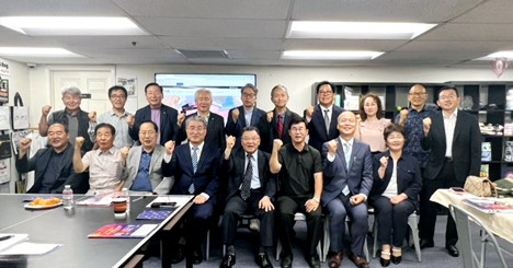 남가주교계 연합 제79주년 기념 ‘8.15광복절감사예배 및 찬양제’ 준비를 위한 첫번째 실행위원회의를 마치고 기념 촬영을 했다. 앞줄 왼쪽부터 KWMC사무국장 이명철목사, 김영수장로, 이성우목사, 심상은목사, 최영봉목사, 샘신목사, 이창남목사, 윤우경권사, 뒷줄 오른쪽부터 조진용목사, 조준석목사, 재스민 전도사, 최영하목사, 서경원장로, 이원석목사, 권영신장로, 장성원목사, 신용집사, 정정근장로 등