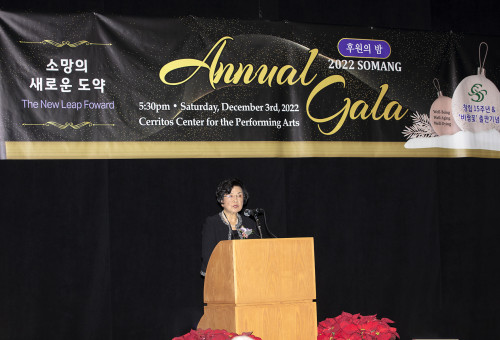 2022년 소망 연례 후원의 밤인 ‘2022 소망 Gala’가 12월 3일(토) 오후 5시 30분부터 세리토스 포퍼밍 아트센터에서 개최되었다. 200여명이 참여한 가운데 열린 갈라 행사는 30여명의 자원봉사자들이 섬김이 있어 더욱 빛이 났다. 소망소사이어티(이사장 유분자)의 창립 15주년 기념 및 바람꽃 구술자서전 출판회를 기념하며 열린 이번 갈라는 5시부터 등록을 받고 5시 30분에 반채근 목사(씨미밸리침례교회 담임)의 사회로 진행됐다.  1부 순서는 구술 자서전 “바람꽃”의 출판식으로 진행됐다.  김도민 목사(라팔마 한인연합감리교회 담임)의 기도,  소망 중창단의 소망의 노래 , 구술 자서전 “바람꽃” 동영상 상영 후, 유분자 이사장의 환영 인사가 이어졌다. 유분자 이사장은 구술 자서전 “바람꽃”을 선보이며 “지나온 삶을 돌아 보며 정리하는 것은 아름다운 마무리이며 한사람 한사람의삶의 기록들이 모이면 그것이 바로 한인 이민역사다”고 전했다. 김영완 로스앤젤레스 총영사를 대신해 최하영 영사가 축사를 했고 자서전 구술자로 참여한 20분의 대표로 이목자 구술자는 “자서전을 통해 자신의 삶을 돌아 보는 계기가 되었고 자신을 삶을나눌 수 있게 되어 감사하다”고 말했다.  1부 순서의 마지막으로 이창민 목사 (LA 연합감리교회 담임)가 서평을 통해 “20분의 삶을 읽은것이 스무개의 산 봉우리를 넘어 가는 것 같았고 다 넘고 보니 봉우리들이 보통 산들이 아니고 이민 사회를 떠받치는 든든한 버팀목이다”라고 소감을 전했다. 2부 순서로 식사를 마치고 소망 중창단이 “과수원 길”과 “하숙생”을 부르며 “새로운 도약” 3부 순서를 시작했다. 2023년부터새롭게 사무총장으로 섬기게 될 신혜원 박사는 부친상으로 인해 한국에서 영상으로 인사를 전했다. “올해 부모님과 사별을 하게 되어 소망 소사이어티의 사역이 얼마나 중요하고 필요한지 느꼈으며 앞으로 겸손히 지역사회를 섬기기 위해 최선을 다하겠다”고 각오를 밝혔다. 12년동안 사무총장으로 섬긴 최경철 원목은 “유분자 이사장과 서로 강점이 다른 것이 잘 맞물려서 지금 까지 성장해 올 수 있었고 소망 소사이어티가 앞으로 새로운 도약을 하게 될 것을 믿어 의심치 않다”고 말했다.  유분자 이사장은 “앞으로 2-3개월간 재정비 시간을 가지며 소망 소사이어티가 “Better Together"  함께 함으로써 성장해 나갈 것”이라고 포부를 전혔다. 4부에서는 남성 중창단 아르모니아 싱어즈의 공연, “사랑으로”를 끝으로 2022년 소망 갈라가 마무리됐다.