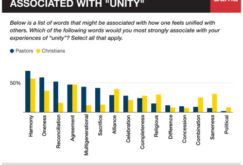 [편집자 주]미국의 중간선거가 이제 완전히 막을 내렸다. 예측됐던 공화당의 절대적 승리는 기대를 못미치고 오히려 민주당에게 힘을 실어지는 결과라는 분석이 크다. 결국 내부 결속이 불가능했다는 분석이다. 지금은 ‘연합’보다 ‘분열’이 익숙한 세대다. ‘동일성’보다 ‘다양성’이 중요한 세대이기도하다. 모든 정보가 손바닥 안에서 가능한 세대이면서도 이념적 거리와 시각은 그 어느때보다 멀기만 하다. 교회와 교계에서도 연합의 필요성은 절대적이라 외치지만 막상 다양성을 포용하는 연합의 실체나 모범답안을 보여주는 교회나 신앙공동체를 찾는 것은 쉽지 않다. 특별히 선거가 포함되는 시기는 더욱 그러하다.   최근 바나리서치에서 “Unity(연합)”에 대한 목회자의 시각과 일반 기독인들의 관점에 대해 분석 발표한 내용이 주목받고 있다.  목회자와 기독교인의 거의 절반이 연합을 "합의"로 본다  바나 리서치의 분석에 따르면 그리스도인들에게  연합의 경험과 연관시키는 용어를 물어볼 때, 그 정의는 다양하다. 또한 목회자와 기독교인은 이 용어에 대한 의견도 각기 다르다. 목회자의 경우 "조화"(70%), "화해"(52%), "희생"(41%)과 같은 단어가 떠오르는 반면 일반 기독교인은 "동맹"(39%) 또는 "동일성"(31%)이라고 말하는 경향이 있다. 목회자와 기독교인은 연합을 "합의"라고 표현할 때 가장 일치한다. 목회자와 기독교인의 47%가 연합을 이 용어와 연관시킨다.  반면 실천하는 기독교인은 실천하지 않는 기독교인보다 연합을 "조화"와 연관시킬 가능성이 더 높으며, 실천하지 않는 기독교인은 실천하는 기독교인(29%)보다 "동일성"(31%)을 더 많이 인용한다. 정기적인 교회 출석과 신앙 참여가 가능한 기독교인들은 연합에 대해 자주 배우고 실천할 수 있는 독특한 기회를 제공받을 수 있으며, 이는 실천하는 기독교인들이 그들의 삶에서 연합의 역할을 보는 방식에 영향을 미칠 수 있는 것으로 분석된다.  흥미로운 것은 목회자의 62%는 교인들 간의 연합에 대해 자주 설교한다고 주장한다. 설교할 때, 목회자 3명 중 2명(62%)은 교인들 간의 연합에 대해 자주 설교한다고 보고했지만 막상 성도들인 기독교인의 48%만이 목회자들이 이러한 특정한 유형의 연합에 대해 듣고 있다고 응답했다.  목회자들 10명 중 6명은 설교와 양육에서 “연합”을 충분히 강조하고 있다고 밝힌 반면 막상 설교를 듣는 성도들은 그렇게 느끼고 있지 않다는 것이다.  목회자들은 실제로 성도간에 경험하는 “차이나 거리”에 대해 연결 고리를 찾아 나가야 하는 상황에서 ‘연합이라는 주제’를 생각만큼 자주 제기하지 않는 것으로 드러났다. 이것은 목회자들이 다루어야 할 강제나 자격이 있다고 느끼는 연합의 유형에 한계가 있을 수 있음을 시사한다. 목회자의 3분의 1 미만(30%)이 종종 서로 다른 정치적 신념을 가진 사람들 사이의 연합에 대해 이야기한다고 보고했지만 일반 기독교인의 23%만이 이에 대해 들은 바 있다고 보고했다. 더욱이 기독교인의 28%는 목회자들이 신자들과 다른 종교를 가진 사람들 사이의 연합에 대해 말하는 것을 들었다고 보고했지만 목회자의 12%만이 이것이 사실이라고 말합니다. 바나리서치는 이러한 불일치가 있는 이유를 두 당사자간의 화합의 정의에 대한 명확성의 부족이 기여 요인이 될 수 있다고 분석했다. 어쩌면 목회자들은 그들이 실제보다 어떤 주제에 대해 더 많이 말한다고 생각하고 있거나, 어쩌면 기독교인들 스스로 목회자들의 설교 내용에 공감하거나 공명되지 않음으로 인해 그 설교에 대한 관심이나 기억을 지워버렸을 수도 있다. 그렇다면 기독인들은 그들 삶의 어떤 곳에서 “연합”을 더 경험하게 될까? 이번 보고에 따르면 기독인들은 교회보다는 가정에서, 그리고 성도들 간 보다는 친구들과 함께 있을때 더 연합하고 있다는 응답을 내놓았다.  기독교인 5명 중 약 3명(61%)은 가정에서 가장 자주 연합을 경험한다고 보고했으며, 48%는 우정에서 이를 경험한다고 답했다. 3명 중 1명 이상만(35%)이 교회에서 연합을 찾는다고 말한 것과는 비교가 된다.  목회자와 기독교인이 선호하는 연합의 정의를 살펴보면, 가정과 친구 그룹이 조화, 합의 또는 동일성과 같은 것들이다고 내놓은 응답이 설득력있다.  한편, 교회나 공동체의 다른 영역에서의 연합은 더 많은 노력이 필요할 수도 있고 어쩌면 이런 연합의 경험을 인정하는 데에는 시간이 좀더 걸릴 수도 있겠다.  실천하지 않는 기독교인들 사이에서의 분석 역시 이 데이터에서 답을 찾는다면 어쩌면 그들은 정기적으로 교회에 출석하지 않기 때문에 자주 방문하는 교회 이외의 다른 환경에서 연합의 경험을 더 자주할 기회가 더 많을 수 있다는 분석이다.  교회에서 리더의 자리에 있는 사람들과 예배에 참석하는 사람들이 올바른 연합에 대한 이해를 위해 필요한 것은 연합의 개념을 둘러싼 모호함과 심지어 그러한 분열이 반드시 있음을 사전에 인지하고 그에 맞게 적응하는 것이 실제적으로 중요하다고 지적한다.   한편 바나리서치는 이번 연구를 위해 지난 6월, 1,223명의 미국 일반기독교성인들과 지난 7