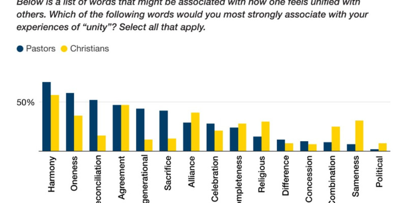 바나 리서치의 분석에 따르면 그리스도인들에게  연합의 경험과 연관시키는 용어를 물어볼 때, 그 정의는 다양하다. 또한 목회자와 기독교인은 이 용어에 대한 의견도 각기 다르다. 목회자의 경우 "조화"(70%), "화해"(52%), "희생"(41%)과 같은 단어가 떠오르는 반면 일반 기독교인은 "동맹"(39%) 또는 "동일성"(31%)이라고 말하는 경향이 있다.