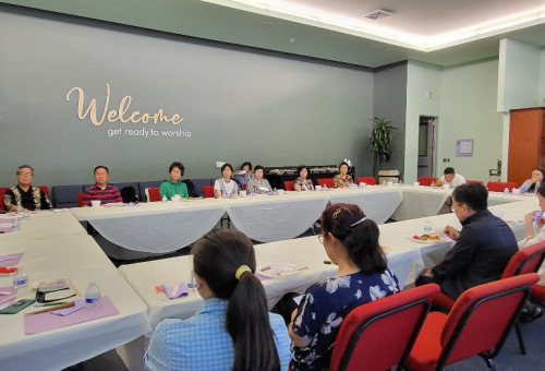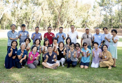 사진2: OC교계 기관 단체 임원들과 관계자들이 행사를 마치고 심상은목사(앞줄 왼쪽 끝가운데 ), 가와노 료헤이목사(앞줄 가운데 회색 양복)등이 함께 기념 촬영을 하고 있다.(OC기독교전도회연합회 제공)
