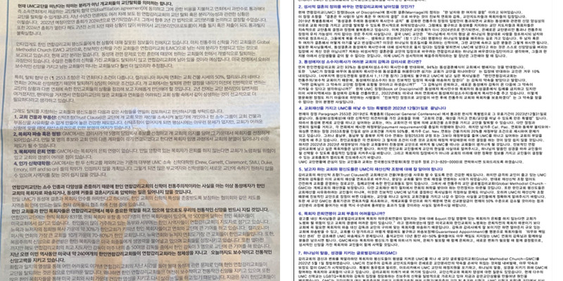 ⧍미국 내 240개 한인교회들이 연합감리교회의 정체성을 지니고 보수적이고 전통적인 신앙고백을 지키고 있다는 등 5개 항의 내용을 알렸다.