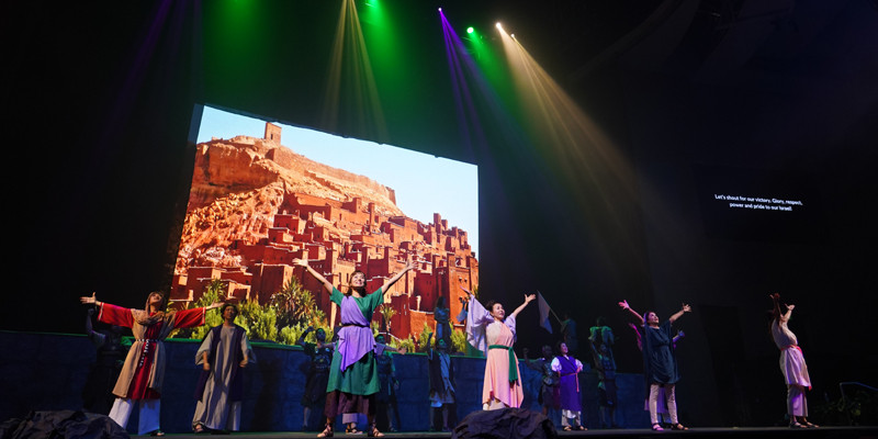 이번 공연은 초대형 LED 스크린을 활용해 구약의 이스라엘 사회를 재현했다. 기존의 프로젝터보다 선명한 화질을 선보이며 현장감을 더했다. 또한 무대 위에 기브아성과 예루살렘성을 제작해 원근감을 살리고 이스라엘의 언덕과 나무, 동굴 등 자연 풍경은 물론 언약괘, 칼, 창, 방패 등 구약 당시 사용했던 물건들을 고증해 현실감을 더 할 수 있도록 준비했다.