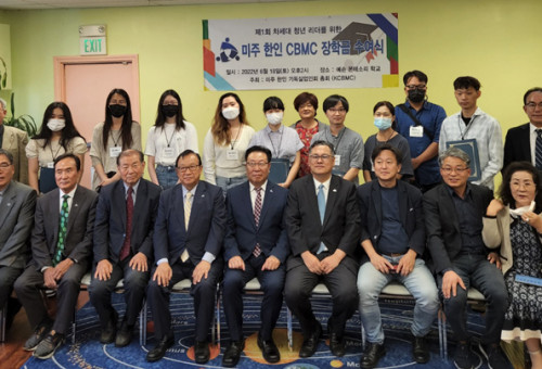 미주한인기독실업인회 임원들이 격려금을 전달 받은 한인 청년들과 자리를 함께하고 있다. 한인 기독 실업인들의 모임인 미주한인기독실업인회(이하 CBMC, 총회장 강승태)가 18명의 한인 청소년 및 청년들에게 전체 3만 6000달러의 장학금 및 격려금을 전달했다. CBMC는 지난 18일 부에나팍 예손몬테소리학교에서 1인당 2000달러씩을 전달하고 꿈과 비전을 향해 쉬지 않고 노력해 달라고 격려했다. CBMC의 이번 장학금은 지난 4월 개최한 ‘한솔 골프대회’ 수익금으로 마련됐다.한인 청년 지도자 지원을 위한 후원금을 계획하고 모금을 진행한 CBMC 직전회장 황선철 회장은 “젊은 한인들을 격려하는 일에 도움을 준 분들에게 감사하다”며 “한인 1세들과 2세들의 가교역할을 할 수 있었다는데 의미가 있다”고 말했다.이번에 전달된 후원금은 한솔보험을 창립한 황선철 직전 회장이 한인 젊은이들을 격려하고 한인 부모세대와 자녀 세대들의 연대를 강조하기 위해 기획됐다. 한인 학생들은 물론 청년 한인 실업인들을 대상으로 진행됐다.가능성 있는 청년들을 대상으로 이민 1세들과의 열결점을 찾아주는 것으로 한인사회의 공동체성을 지도하기 위한 것으로 전해졌다.수혜자 선발책임을 맡은 안신기 목사는 “이번 프로그램에는 42명의 한인 학생들과 청년들이 지원해 그 중 18명을 선발했다”며 “재정적으로 어려운 지원자 70%, 성적이 우수한 지원자 30%를 각각 뽑았다”고 말했다. 이날 행사는 장학위원장을 맡은 안신기 목사의 사회로 시작됐다. 한기형 목사는 설교룰 통해 열심히 노력하며 기도하는 자들은 하나님께서 도와주실 것이라며 희망을 전했다.이러 모종태 상임고문과 황선철 직전 총회장의 격려사 등이 이어졌다. 지역에서 활동하는 한인 정치인인 박영선 부에나팍 시장과, 유수연 ABC통합교육국 교육위원장이 참석해 축사했다.이날 후원금 전달식 중간에는 새로 선임된 CBMC 강승태 총회장이 황선철 직전 총회장과 장학위원장인 안신기 목사에게 감사패를 전달했다. 이번에 선발된 장학금 및 지원금 수혜자들은 ‘서울 메디칼 후원’ 장학생 3명, ‘교민청 후원 장학생’ 3명, ‘한솔 보험 후원 장학생’ 12명 등으로 구분됐다.한편 CBMC는 기독교신앙을 고백하는 실업인들과 젊은 직장인들이 모인 모임이다. 전도, 양육, 리더십 개발, 일터 변화를 추구하고 있는 비영리 국제단체다. 전 세계 95개국에 조직되어 있으며 비즈니스 세계에서 크리스천 리더를 발굴하고 전도와 양육을 통해 개인, 일터, 공동체의 변화를 목적으로 활동하고 있다.
