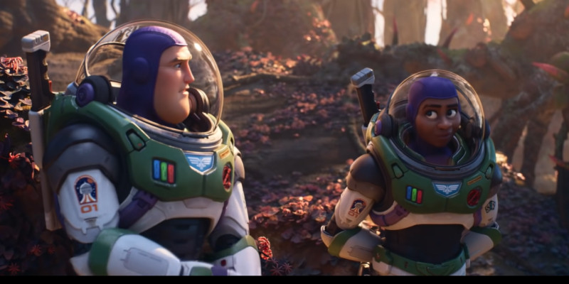 애니메이션 영화 버즈 라이트이어는 ‘토이 스토리’ 시리즈 속 장난감 버즈의 극 중 모델, 우주특공대원 버즈 라이트이어의 이야기를 그린다. 극중 라이트이어의 동료인 여성 부부가 가볍게 입맞춤하는 장면이 나온다.