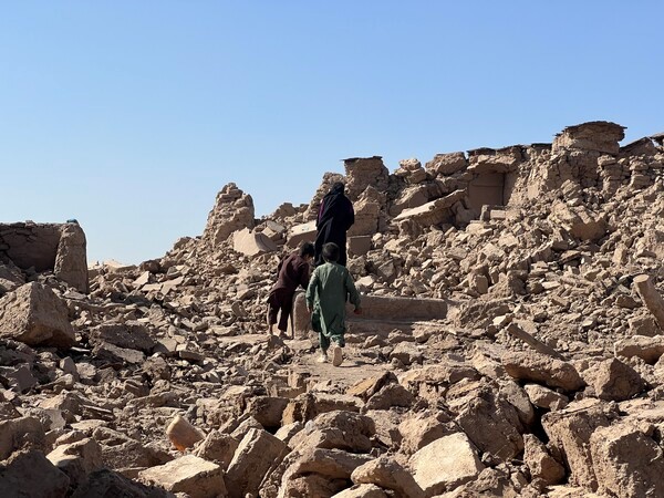 아프가니스탄 헤라트 지역에서 발생한 지진으로 무너진 건물과 주민들.                                    (사진제공=월드비전)
