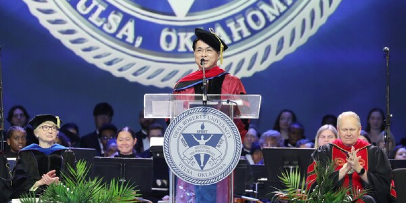 오랄로버츠대학교 졸업예배에서 한국인 최초로 설교를 전한 이영훈 목사.
