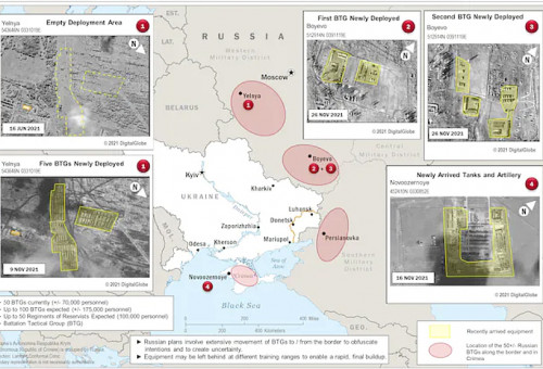 미국을 비롯한 서방 국가들의 군사, 정보당국에서 러시아의 우크라이나 침공이 임박했다는 진단을 잇달아 내놓고 있는 가운데 강대국간의 전쟁 기운이 세계를 불안에 떨게 하고 있다. 자칫 세계대전으로까지 확대될지 모른다는 생각에서다.최근에는 러시아 침공 특정 날짜까지 언급됐다. 일부 언론에서는 러시아가 우크라이나에 침공하기 위한 구실을 만들기 위해 자작극을 기획하고 있다는 보도까지 이어졌었다.미국을 비롯해 서방국가들이 보는 러시아 침공의 근거는 위성사진에 찍힌 러시아군의 동향이다. 우크라니나가 지난 2019년 초 북대서양조약기구인 나토(NATO)에 가입의사를 밝힌 후 1년여 만에 러시아는 벨라루스와 합동 군사훈련을 이례적으로 2월 개최하는 등 국경 분위기를 험악하게 이끌어 왔다. 첨단 무기와 전략폭격기까지 동원한 것도 침공설의 징후로 지적됐다.실제로 러시아는 우크라이나의 나토 가입에 불편한 심기를 이어가고 있다. 블라디미르 푸틴 러시아 대통령은 지난 7일 서방언론들과의 기자회견에서 “우크라이나가 나토에 가입하고 군사적 방법으로 크림을 탈환하려 시도한다면 유럽 국가들은 러시아의 강력한 무력을 맛보게 될 것”이라고 경고하기도 했다. 하지만 러이사의 우크라이나 침공을 회의적인 시각으로 보는 사람들도 많다. 러시아가 서방국가들의 경고에도 불구하고 무력으로 침공을 감행할 경우 국제사회 금융결제 차단 등 ‘득보다는 실이 더 많을 것’이라는 지적이 상당수다.이런 가운데 러시아의 사주를 받은 인근 용병들이 러시아의 침공 빌미를 만들어주기 위한 자작극에 동원될 것이라는 주장도 일고 있다.서방 안보 소식통들은 우크라이나에 배치되는 용병들은 러시아 정보기관인 연방보안국(FSB)과 군 정보기관인 총정찰국(GRU)과 밀접하게 연계된 민간용병업체(PMCs) 소속이라고 밝혔다.특히 최근 수 주간 배치된 용병 중엔 러시아 용병업체 와그너그룹 소속도 있으며, GRU 장교 출신인 한 용병이 친러시아 분리세력이 장악한 우크라이나 동부 도네츠크에 잠입하기도 했다고 전했다.한편 러시아의 우크라이나 침공은 구소련의 세력 확장을 견제하기 위해 만들어진 나토를 직접적으로 거론하면서 침략 의도를 드러낸 것이기 때문에 서방국가들의 적극적인 대응이 불 보듯 뻔하다는 지적이다.실제로 미국을 비롯해 유럽 민주주의 국가들은 러시아에게 우크라이나 침공하게 되면 그에 대한 대가는 혹독할 것이라고 계속해서 경고하고 있어 3차 세계대전의 불씨가 되지 않겠냐는 우려도 낳고 있다.미국 정보당국은 지난해 12월께 17만 5000명에 달하는 러시아군들이 우크라이나 국경 인근에 집중해 있다고 분석했다. 워싱턴포스트 제공